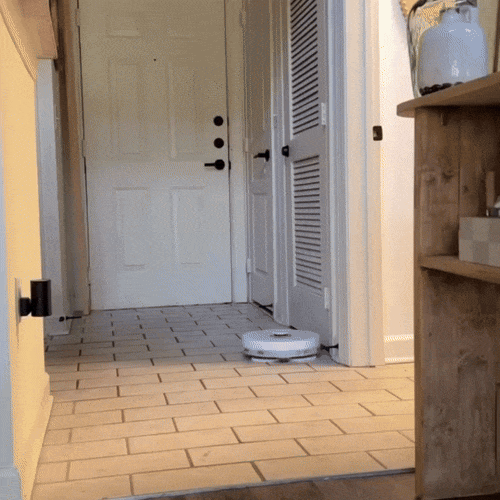 Robot automatycznie porusza się po pomieszczeniu w trybie czyszczenia, skutecznie usuwając kurz i zabrudzenia dzięki systemowi antykolizyjnemu.